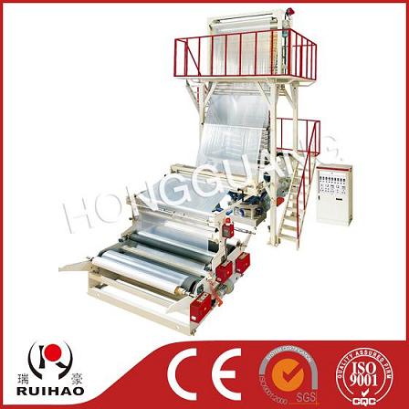 本机主要用于吹制以HDPE、LDPE、LLDPE,为原料的地膜,大棚膜和包装膜。挤出机料筒、螺杆采用优质合金钢,经氮化处理和精密加工,耐磨、耐腐蚀,自动控温,准确可靠,采用摩擦双卷机构,自动计米,操作方便。