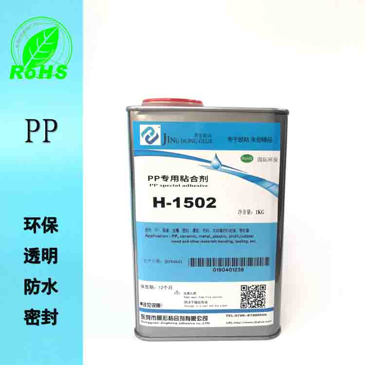 H-1502 PP专用接着剂系采用特殊树脂的单组份胶粘剂,专门针对聚丙烯(PP)材料研发的特种胶粘剂,对PP板材、PP发泡板,片材,管材,薄膜的自粘与互粘都可以达到较好的效果,与聚乙烯(PE)、EPP、聚氯乙烯(PVC) PVA、EVA、PET、ABS、尼龙、海棉、 薄膜、有机玻璃、橡胶、金属、竹木材、织物纸张也有较好的粘接力。H-1502PP专用胶水广泛应用于塑胶制品、家电工业、无线电工业、装饰装潢、工艺玩具、保温材料、包装印刷等行业,是目前粘接PP(聚丙烯)塑料理想的粘合剂。可在常温下自然固化,定位时间适中,粘接强度高,固化后不发白,防水,防蚀,防锈性能好。本产品符合欧盟ROHS标准,通过SGS检测。