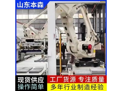 本森水泥盖板码垛机器人是山东本森智能装备(山东)有限公司研发的一款集成机械、电子、计算机、传感器及人工智能技术的自动化设备,专为水泥制品生产线及建材仓库设计,旨在实现水泥盖板的高效、精准码垛。以下从核心功能、技术优势、应用场景及行业价值四个维度展开分析: