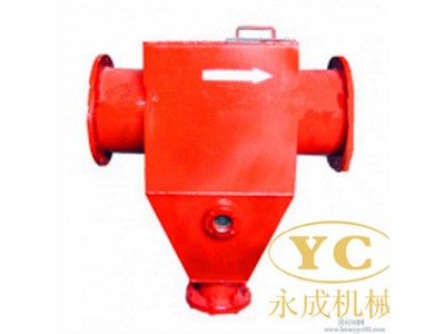 采用离旋式分离原理设计制造而成。当含大量杂质的气体从管路的进口导入该装 置的外壳和排气管之间,形成旋转向下的外旋流。含外旋流的杂质在离心力的作 用下移向筒壁,并随外旋流转到该装置的下部,杂质在离心力和重力的共同作用 下与气体分开,进入除渣装置的底部。脱杂质后的气体形成上升的内旋充并经过 排气管排出。