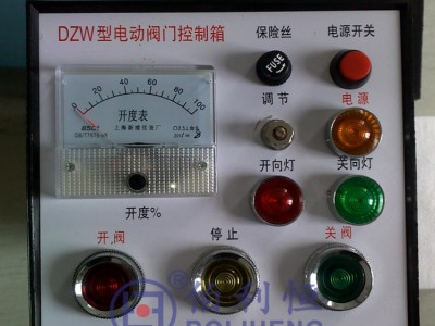 开度指示器的调试:调节电动装置内开度指示器上的电位器W1和位于控制箱内的电位器W2,使开度表在电动阀门处于全关位置时指示为0,全关位置时满度指示。DZW型电动阀门控制箱,DKX-C-Z-10