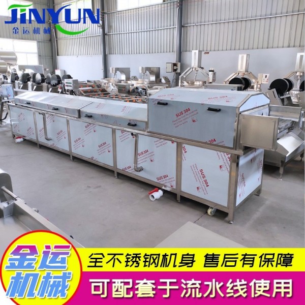 1、设备除电机、轴承等标准件外均采用不锈钢SUS304/2B材料制作,符合出口食品卫生要求。本机系列适用于蔬菜杀表、脱水蔬菜、腌渍菜、低温肉制品、奶制品等食品的灭菌。灭菌温度、速度可根据工艺要求设定。 2、该机采用SUS304不锈钢网带,网带强度高、伸缩性小、不易变形、易保养等特点,整机运行平衡、噪音低,提高了工作效率。 3、本机加热源为蒸汽加热,带有自动控制进汽装置,大程度减少能源浪费。 4、本机传动系统采用调速减速电机,使输送带传送速度可调,杀菌工艺具有“随意性”。 |