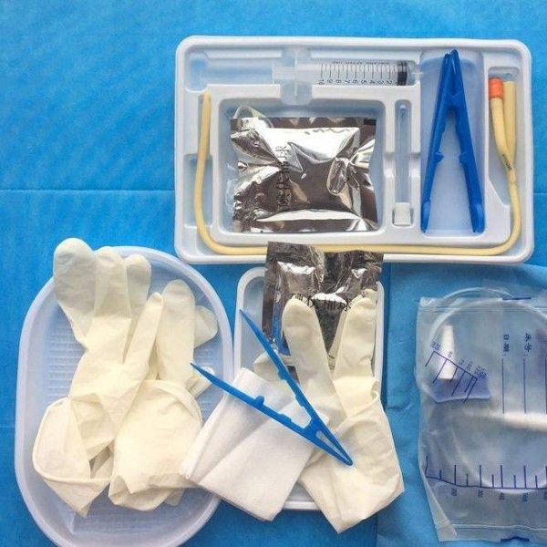 本品由基本配置托盘、一次性使用包布、一次性使用引流管和选用配置一次性使用医用孔巾、一次性使用引流袋、检直手套、一次性使用灭菌橡胶外科手套、一次性使用镊子、石蜡棉球、脱脂纱布块、一次性使用聚乙检査手套、一次性使用治疗巾、碘伏棉签、止血钳、医用钳组成。