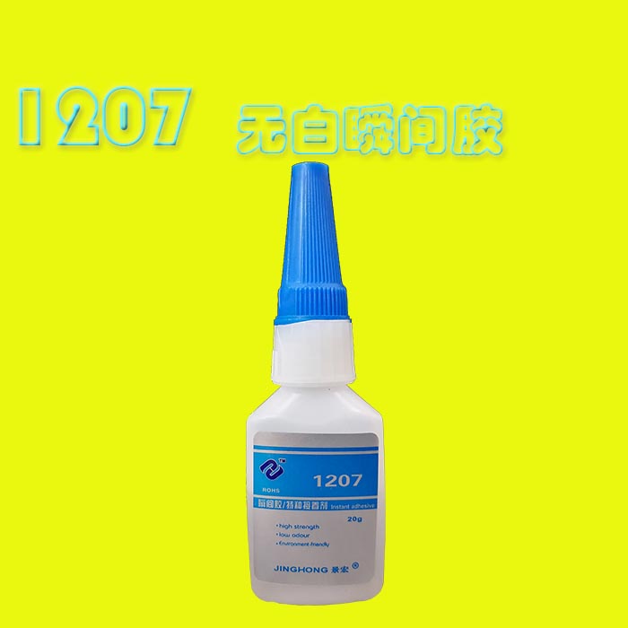 景宏H-1207无白化 瞬干胶水已通过欧盟ROSH标准检测,是专为无白化 无气味要求粘接而研发的高强度单组分瞬间粘接剂,具有高性能、耐老化非常适合连续化生产线作业。粘接后长时间耐高温90度和低温-40度。 主要用于粘接金属、塑料、陶瓷、瓷器、工艺品、大理石、瓷砖、花岗石、宝石、水晶石、橡胶、竹木、乐器、电器零件、皮革及多种工艺制品,因而广泛应用于五金、家具、展示展架、陶瓷、机械、电子、仪仪表、汽车、造船、纺织、建筑、化工、航空、医疗等粘接领域。(硅胶/PP/PE需要配合1205表面处理剂使用)